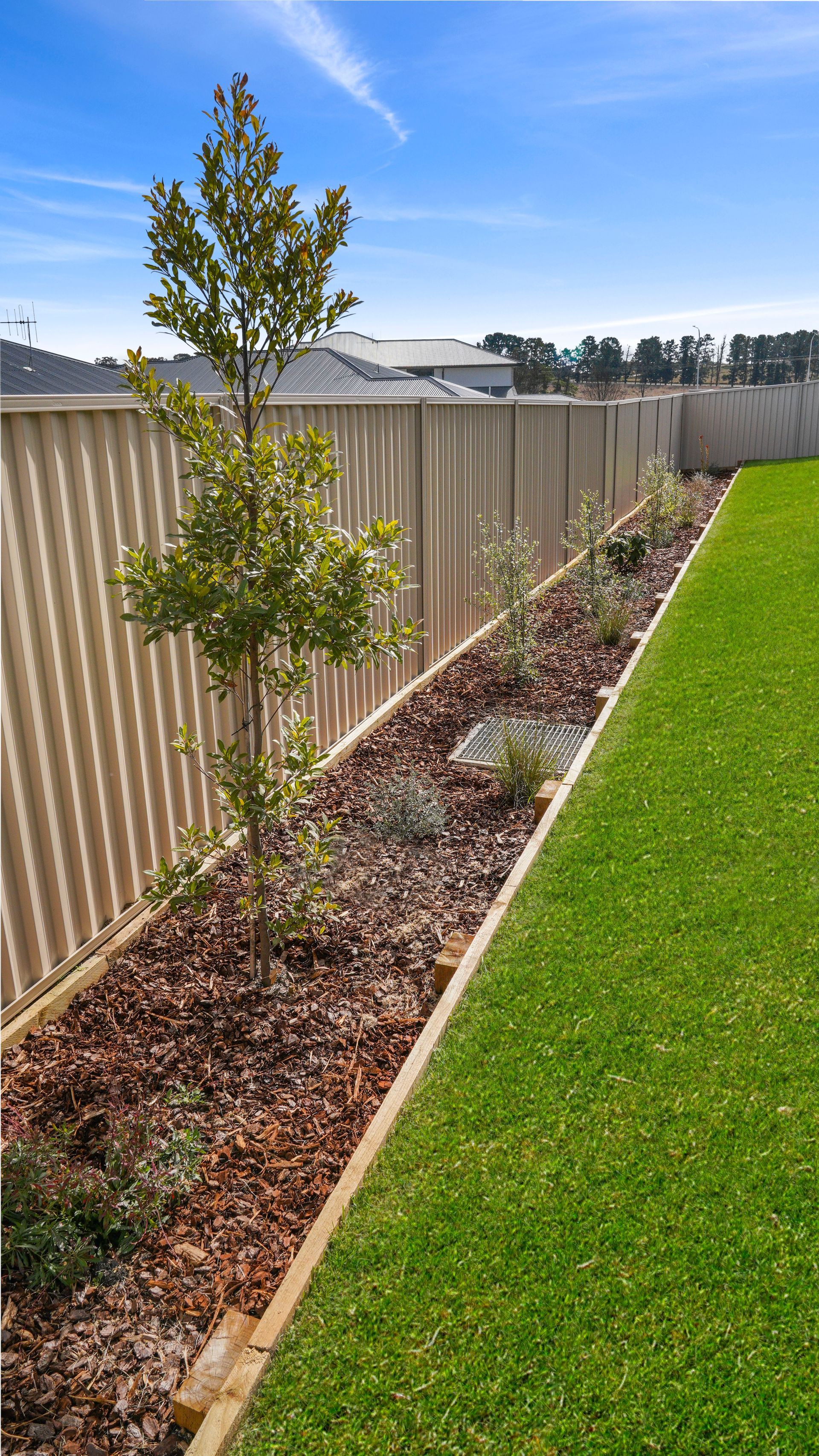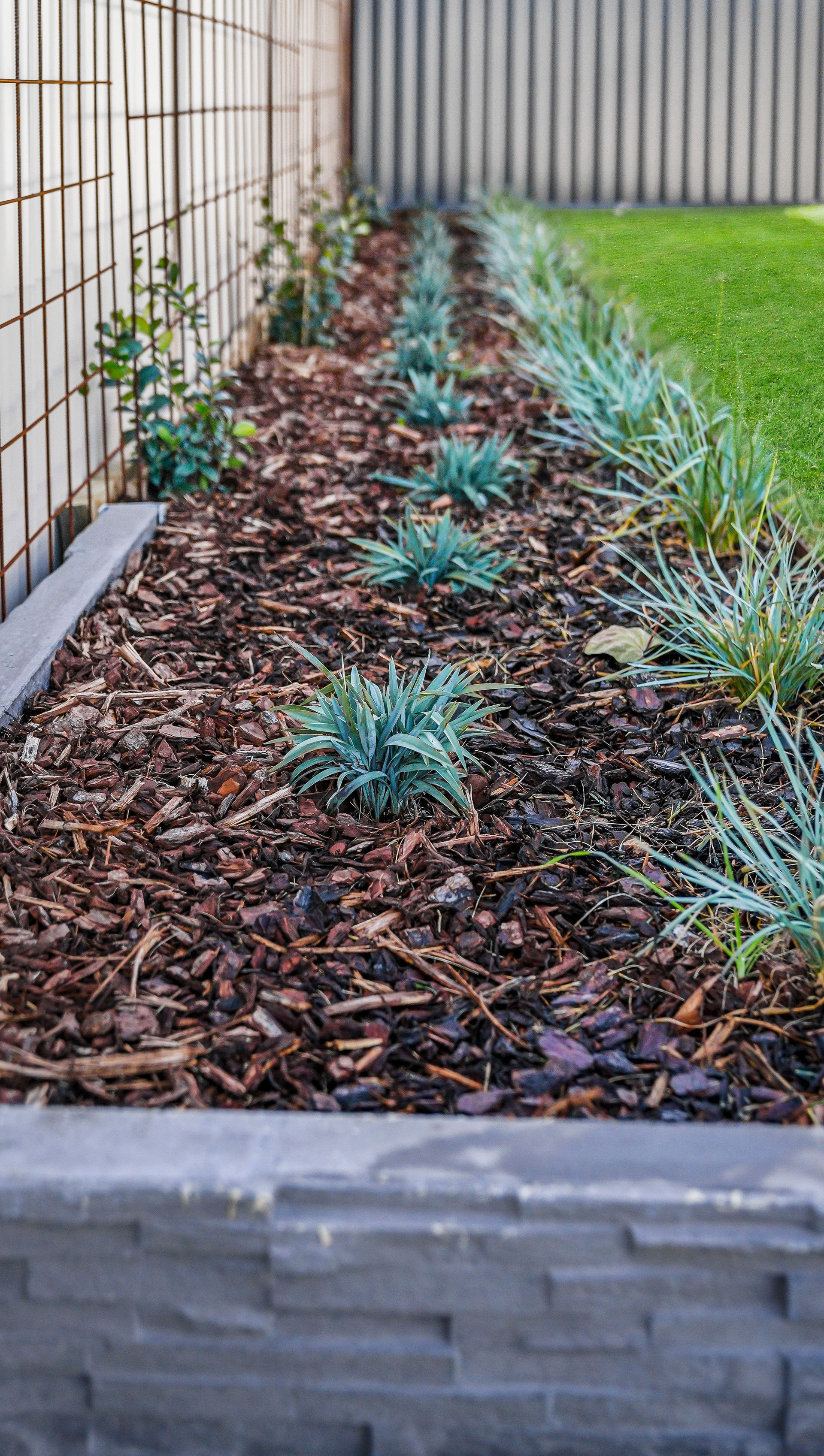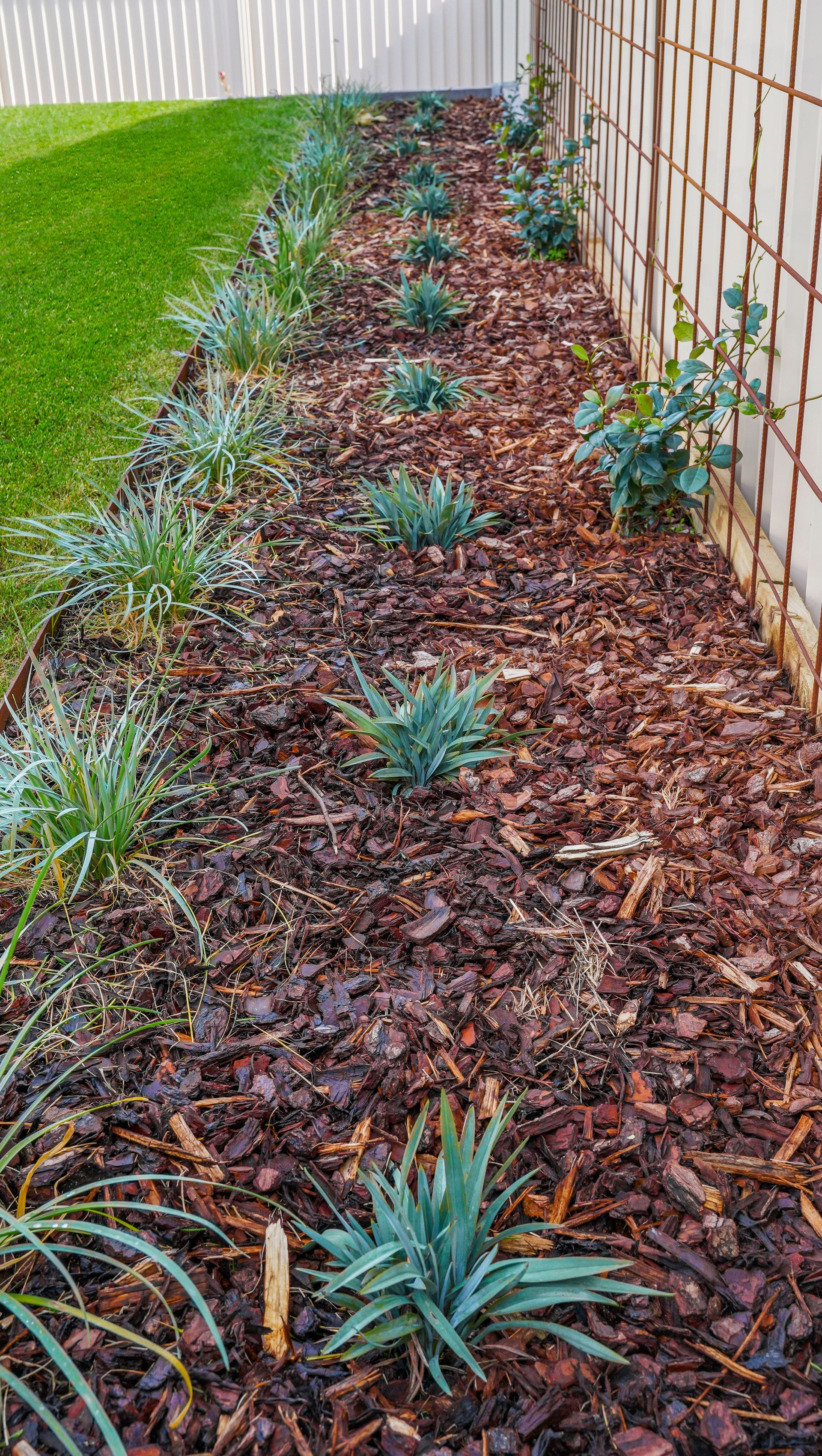 Low maintenance garden with mulch in Bathurst NSW landscape construction